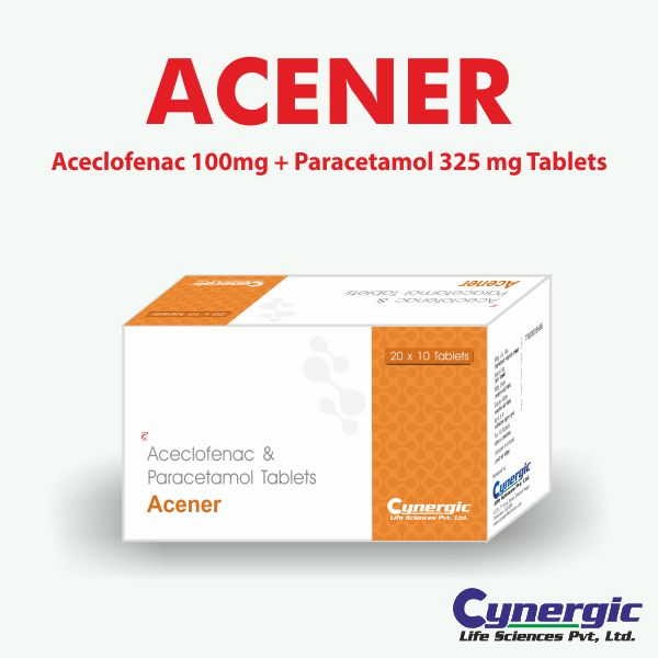 Acener Tablet should be taken in the dose and duration as advised by your doctor. It should be taken with food or milk to prevent stomach upset. Taking the medicine regularly at the right times increases its effectiveness. It is important to keep taking the medicine regularly until your doctor tells you it is safe to stop.